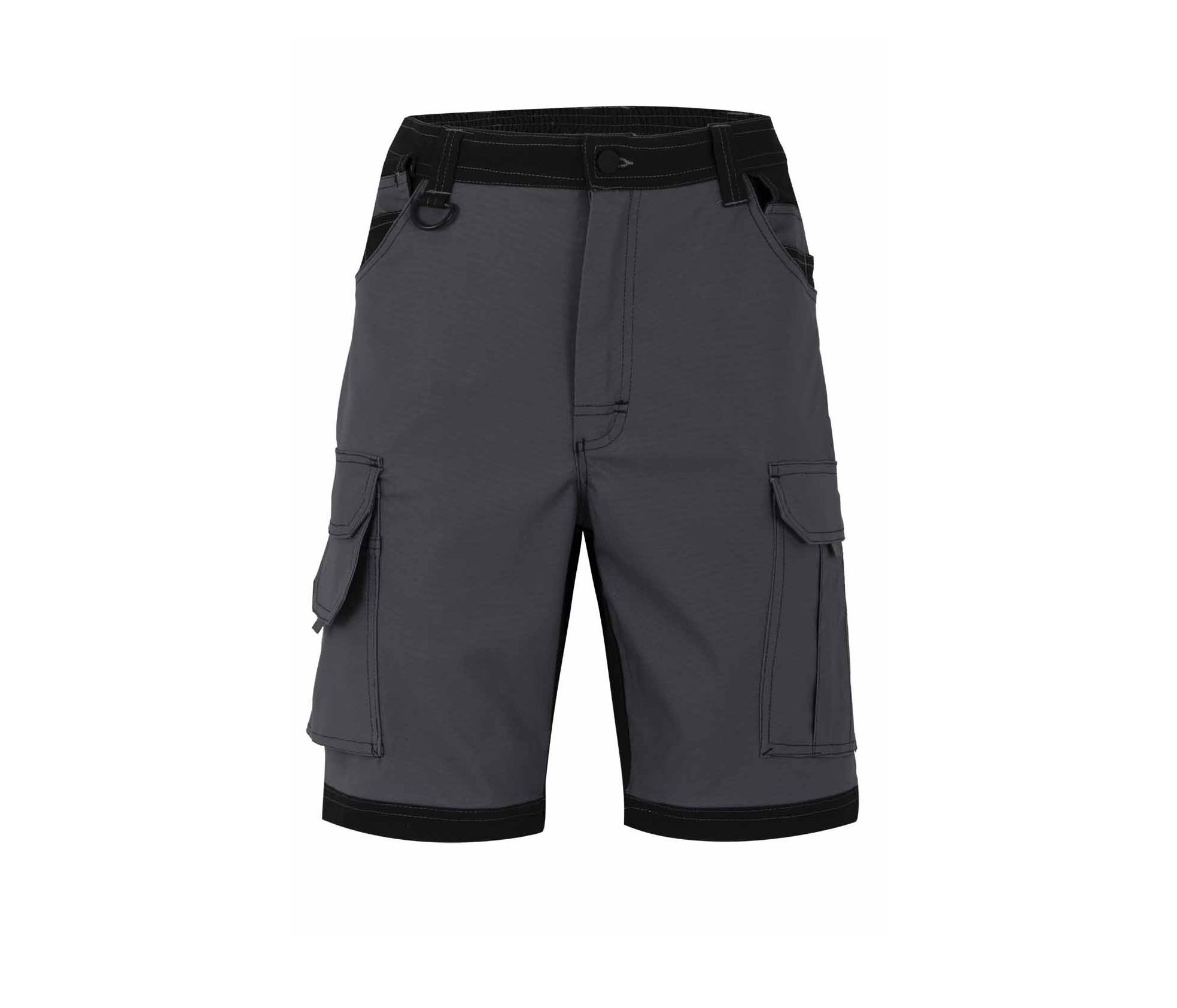Fermeture zippée avec bouton. Taille élastiquée. Tissu renforcé à l’arrière. Double couture. Anneau en plastique sur l’un des passants de ceinture. Poches volantes (avec différents compartime