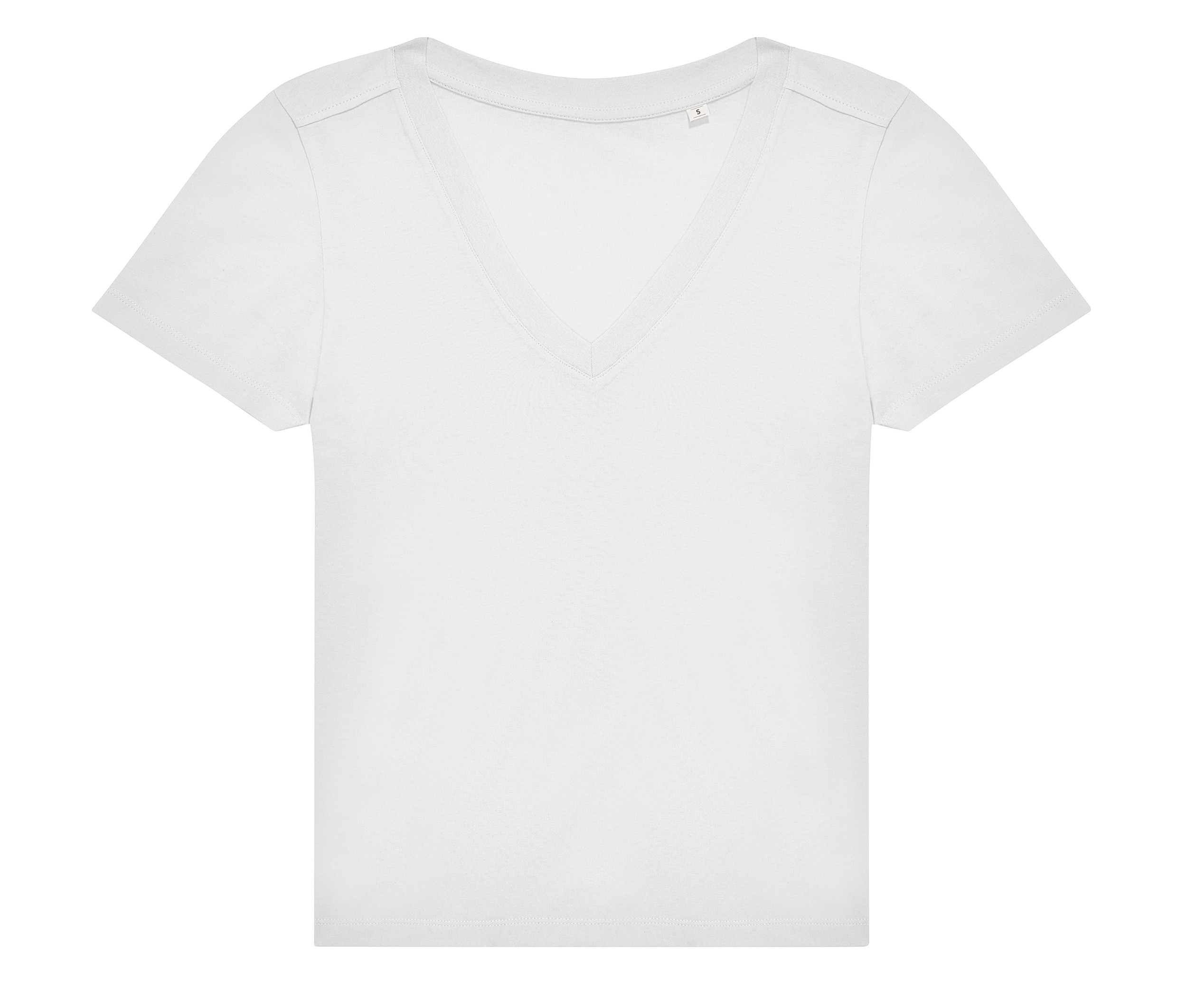 Coutures latérales. Col féminin en V. Bande de propreté au col. Matière résistante et douce.
