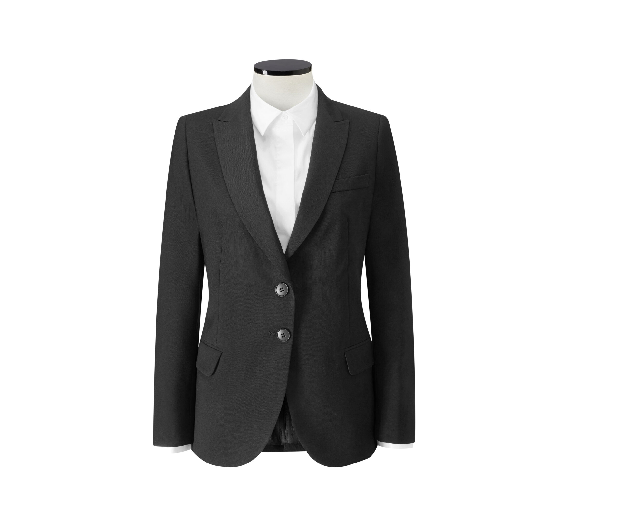 Veste de tailleur contemporaine. Doublée. Fermeture droite 2 boutons. Lavable en machine.