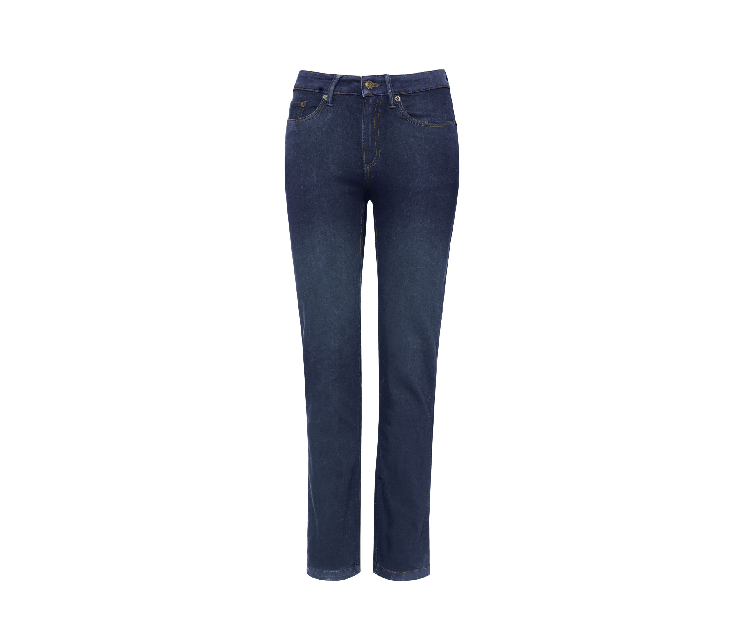 Coupe droite. Jean stretch. 5 poches. Fermeture braguette et bouton. Passants pour ceinture. Rivets en métal au coin des poches. Double couture.