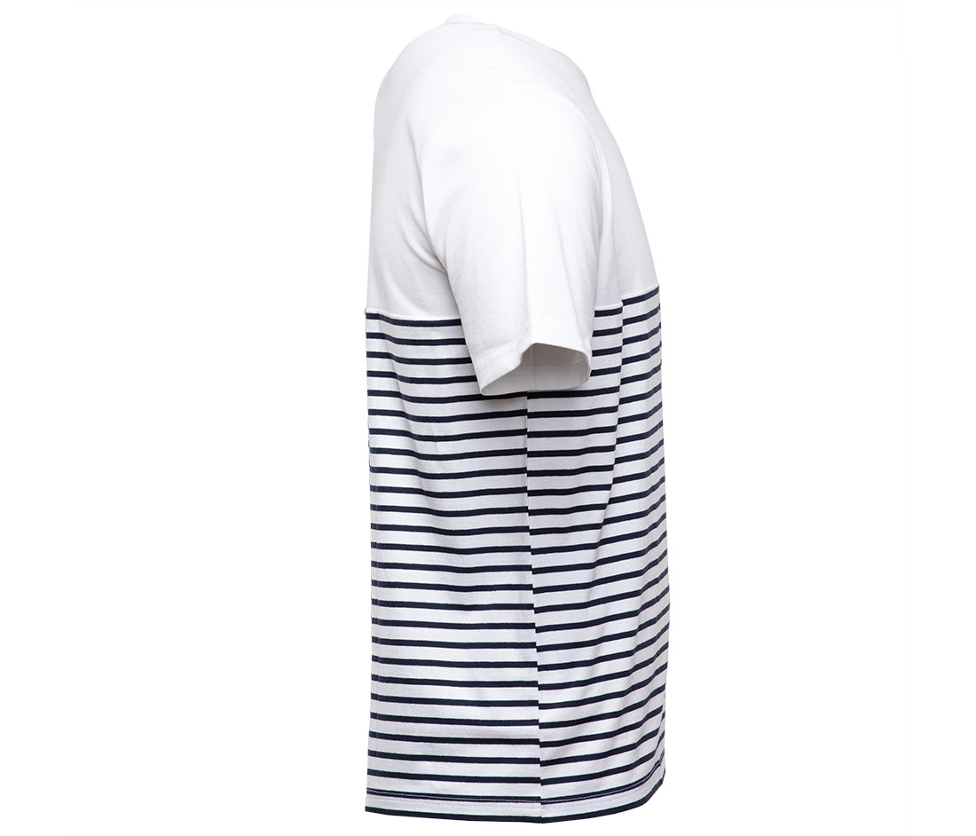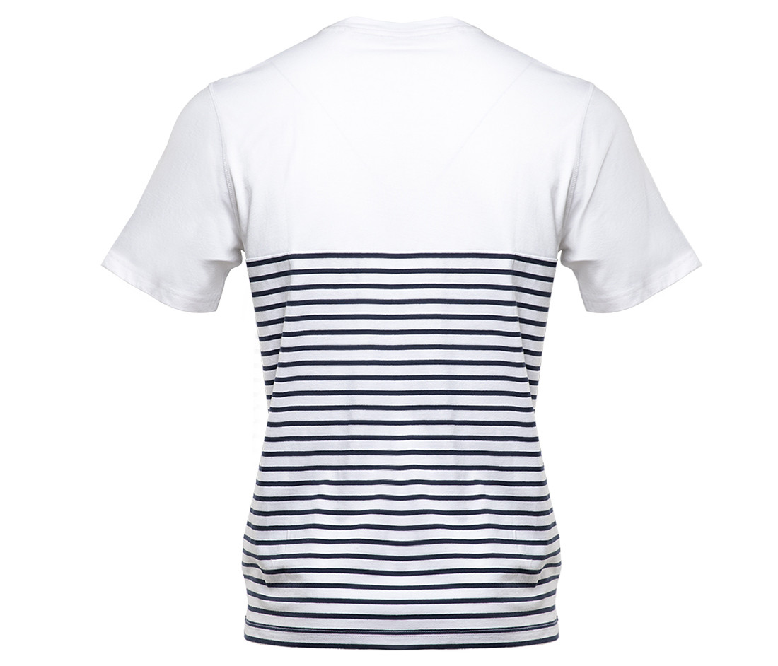 Manches courtes et droites. Rayures commençant à 20 cm du col. Col avec élasthanne. Coutures latérales. Coutures en croix sous le col.