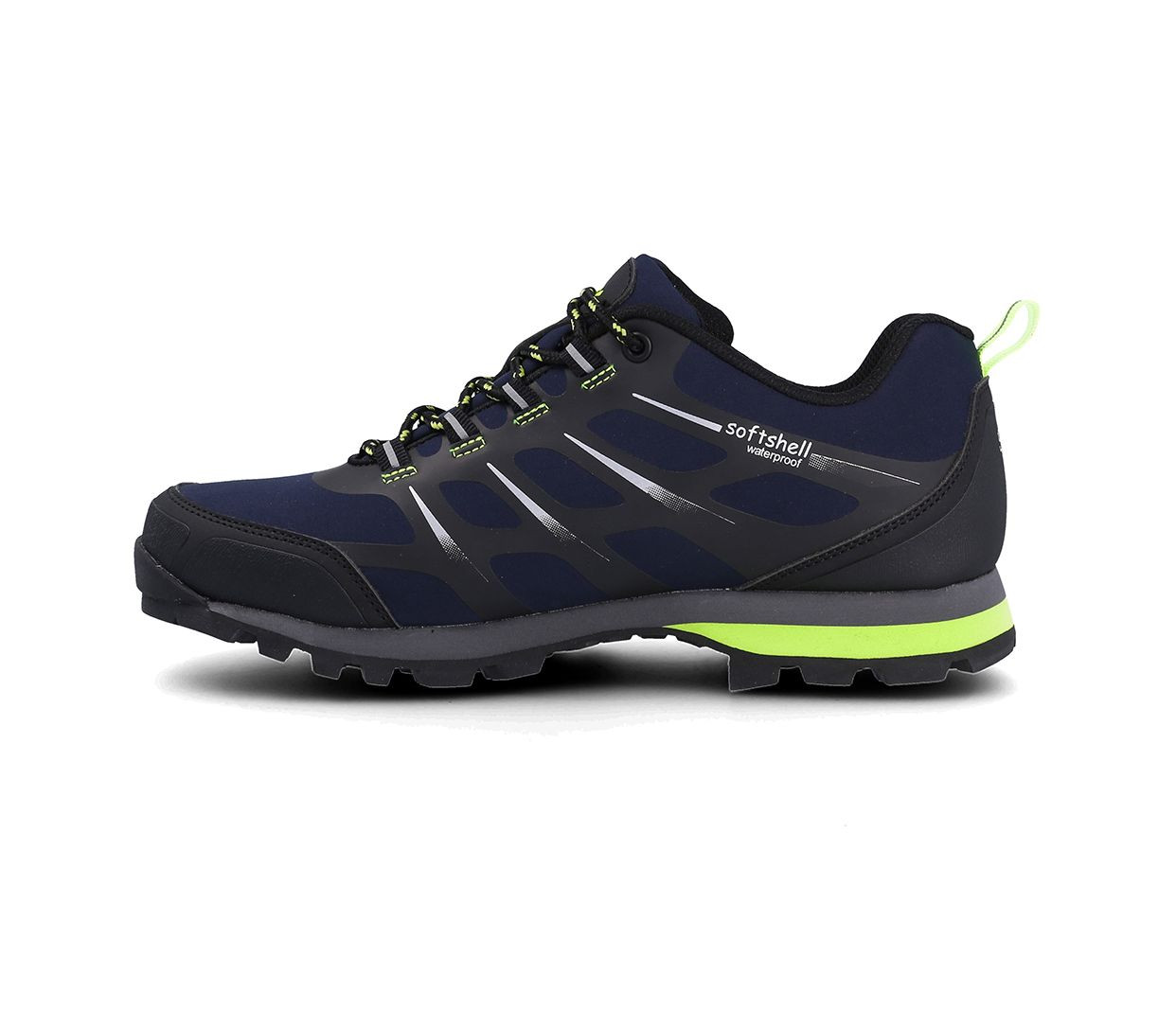 Semelle en polyuréthane double densité et caoutchouc. Tige en Softshell avec renforts aux orteils et au talon. Doublure imperméable. Semelle intérieur en EVA.