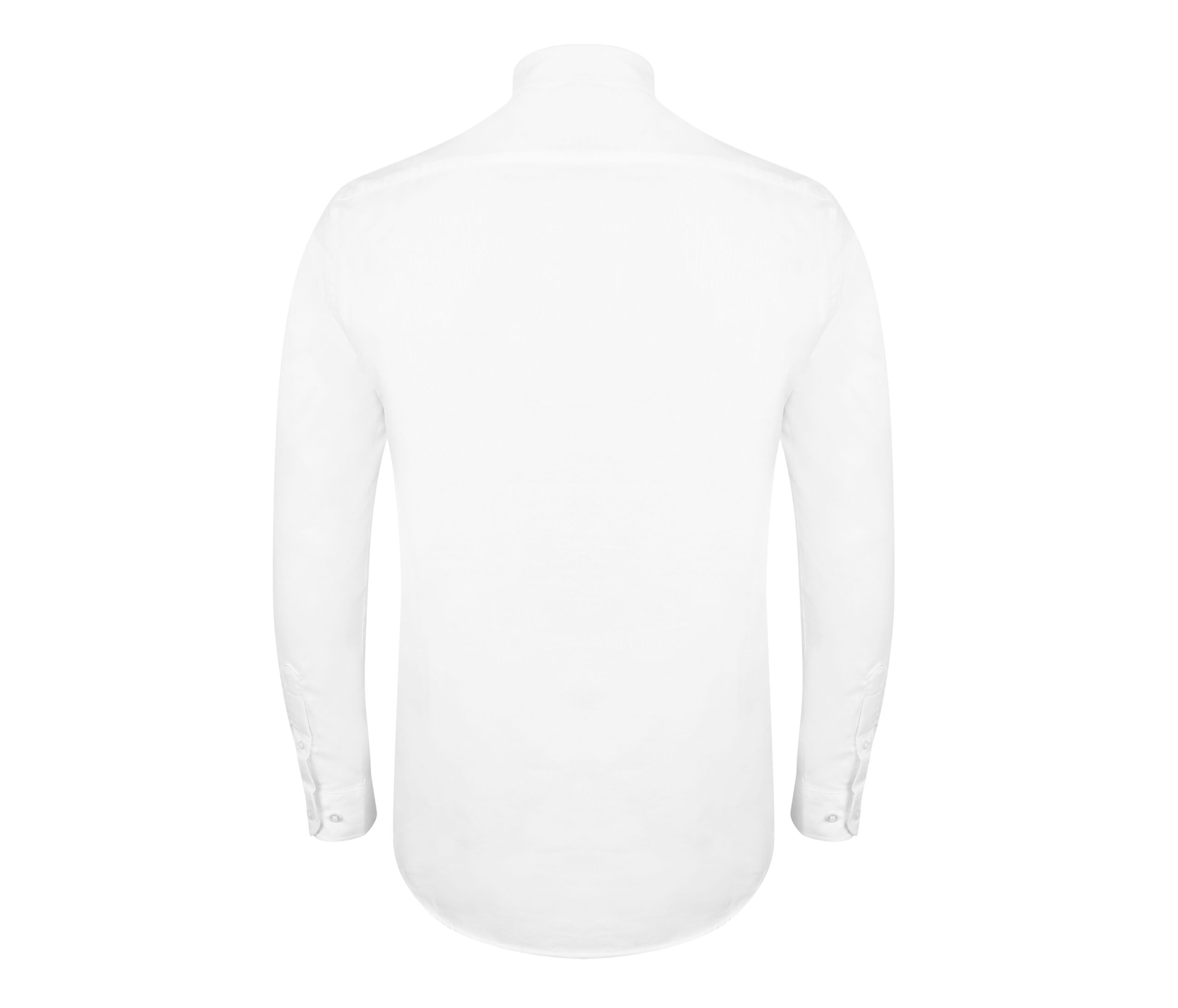 Coupe classique avec coutures latérales façonnées. Tissage Oxford léger, infroissable. Col court boutonné. Poignets réglables. Boutons perlés. Sans étiquette.