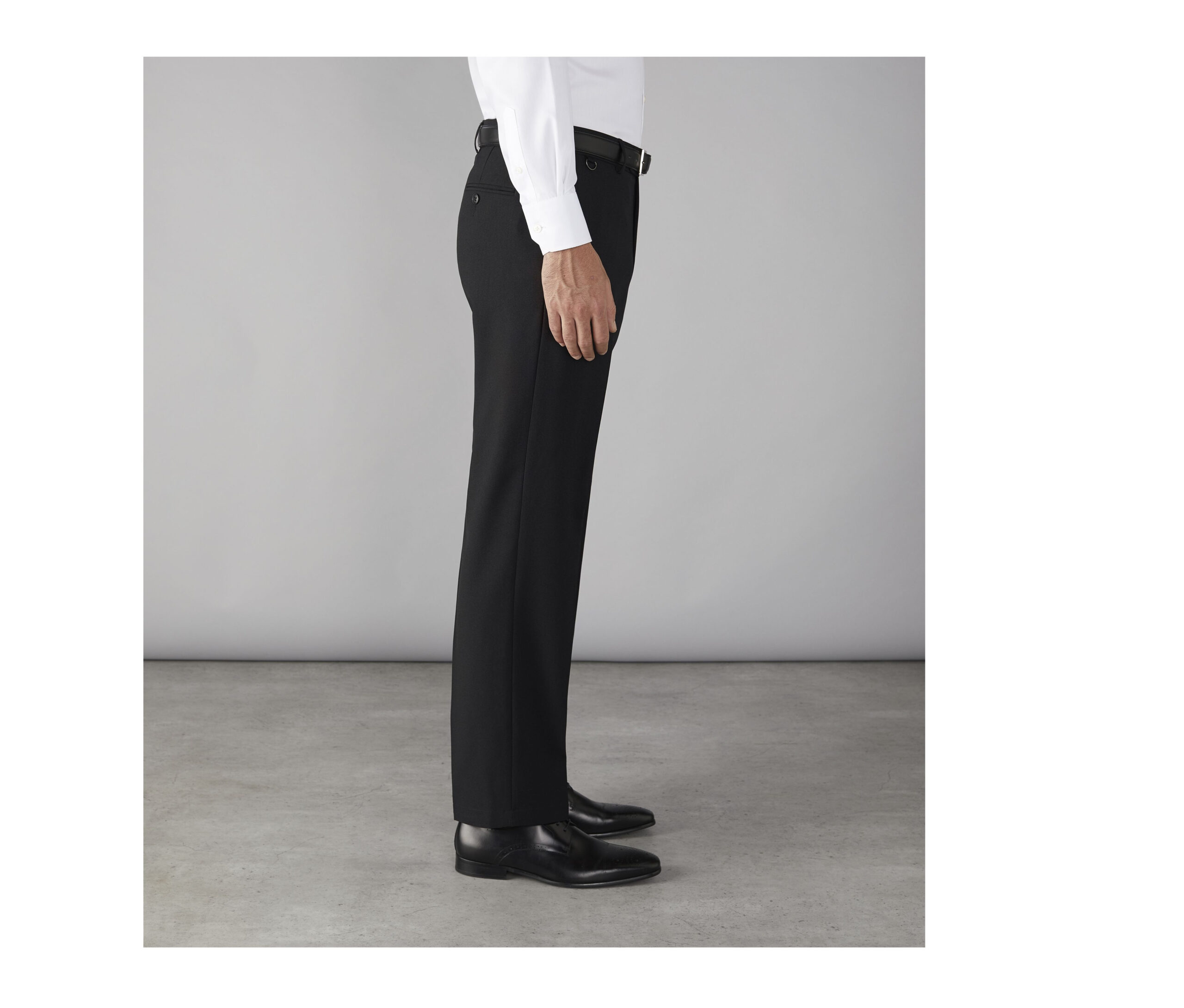 Pantalon moderne simple 1 pli. Passants pour ceinture. 2 longueurs sur certaines tailles, U : bas non cousu: 94cm et R: Regular: 79cm.