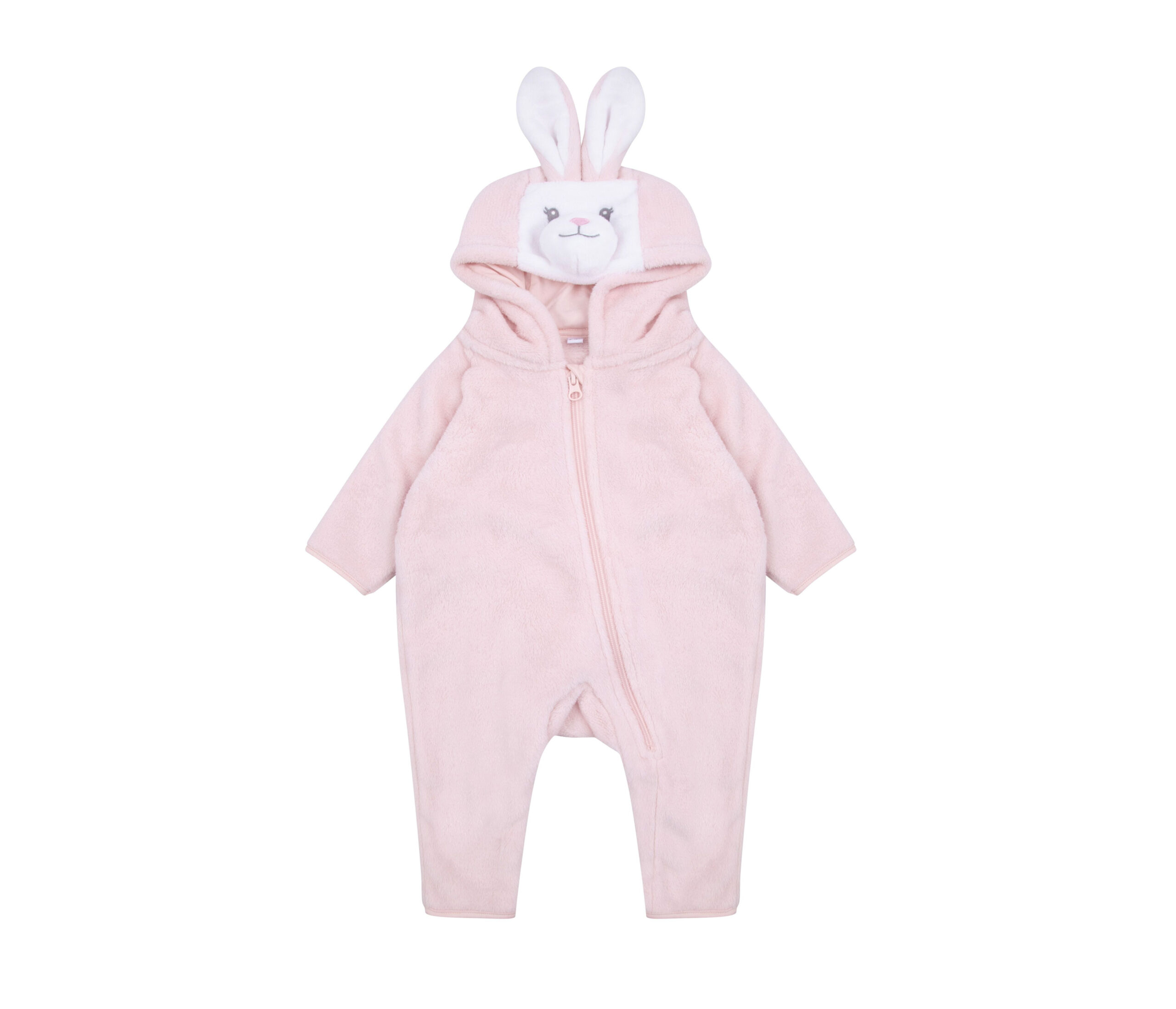 Combinaison pour bébé. Fermeture grand zip YKK. Oreilles de lapin sur la capuche.