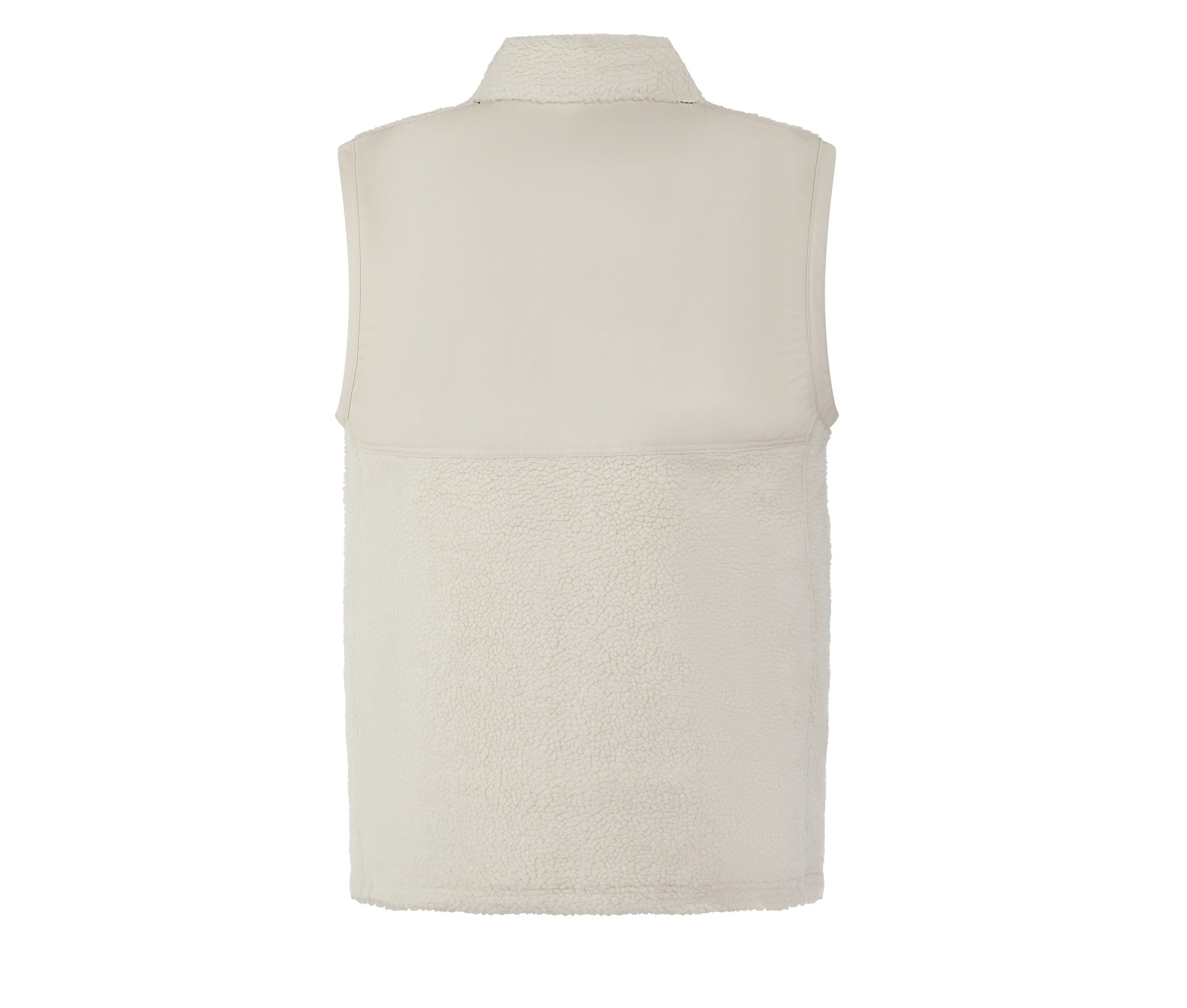 Poche frontale zippée sur la poitrine et poches latérales passepoilées avec fermeture à glissière. Col cheminée contrasté, intérieur en polaire.