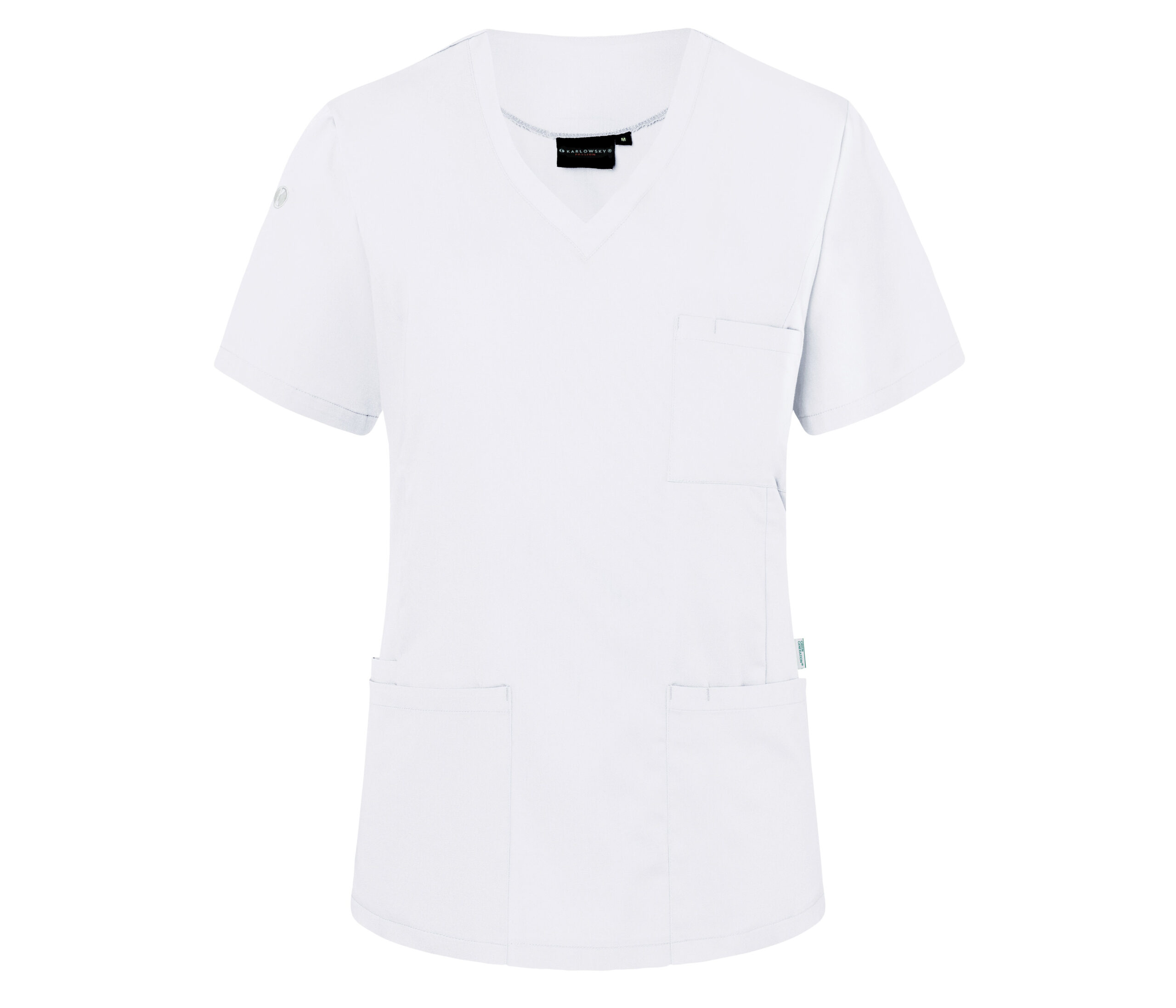 Col V. Convient notamment aux secteurs de la santé et de la beauté. Coupe légèrement ajustée.