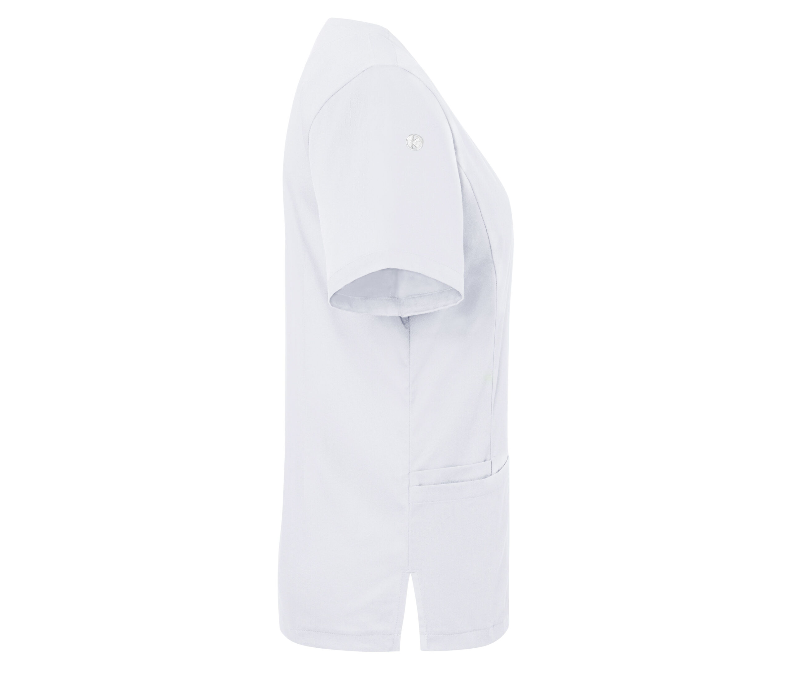 Col V. Convient notamment aux secteurs de la santé et de la beauté. Lavable à 95°. Coupe légèrement ajustée. 2 poches sur les côtés et 1 poche cachée côté droit. Poche poitrine.