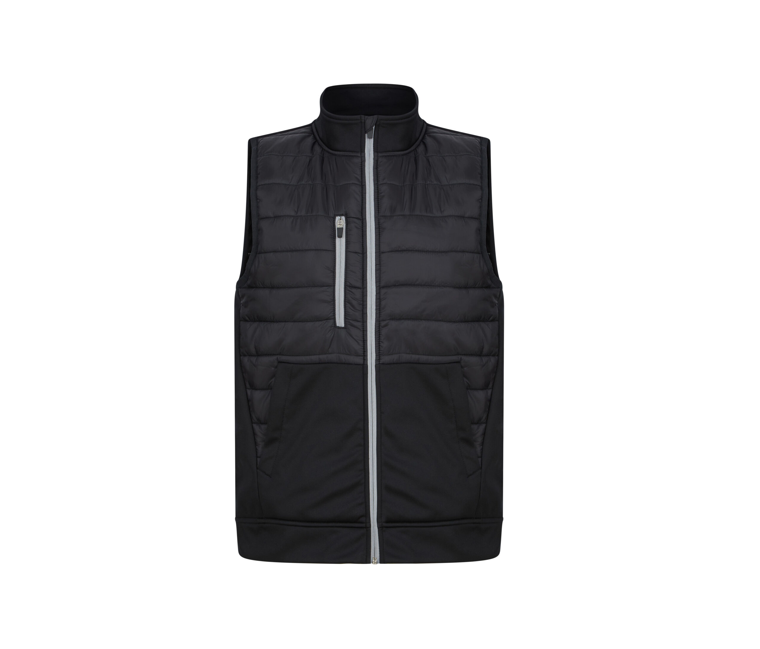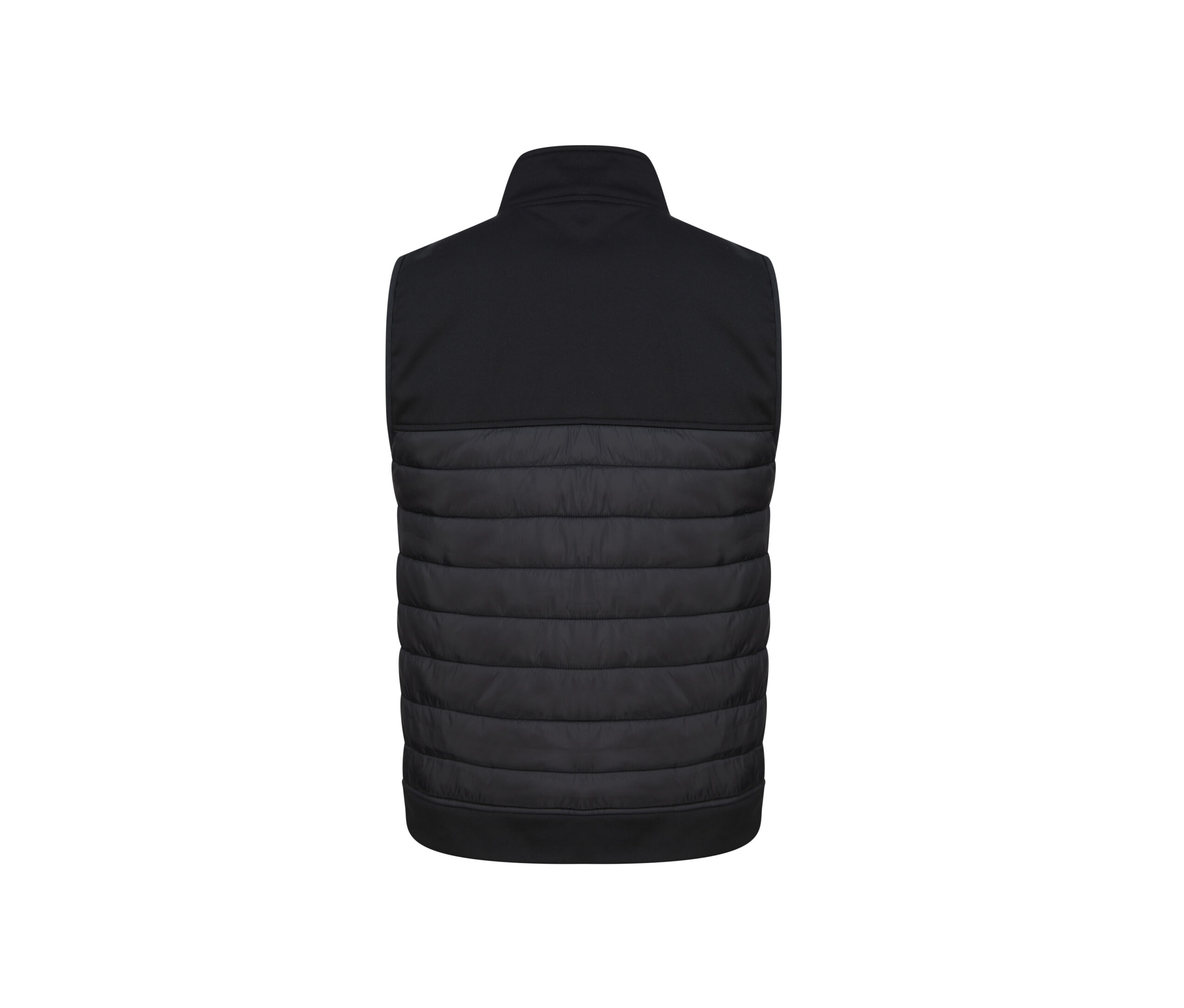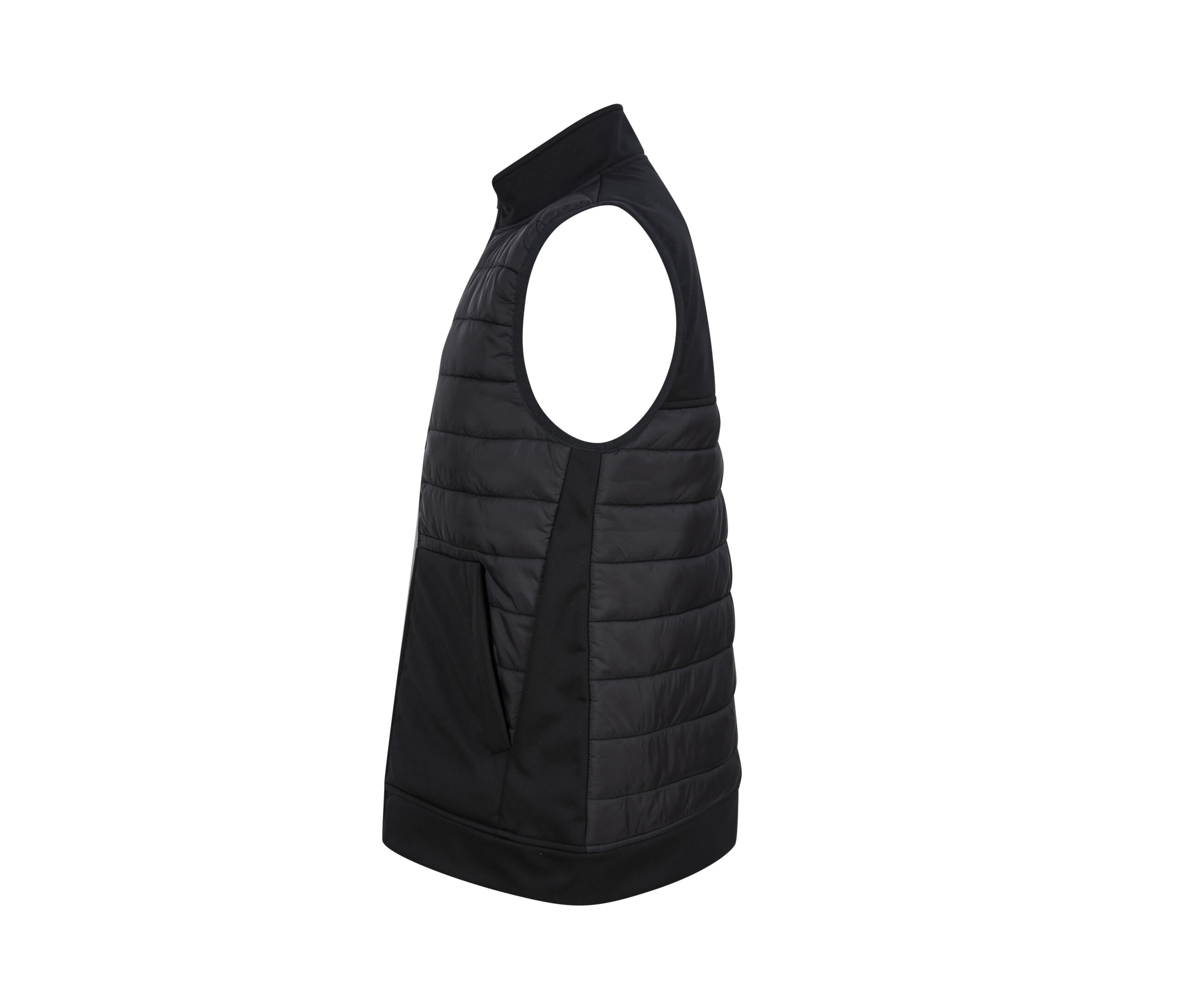 Fermeture grand zip. Softshell sur les côtés, le dos et les poches. Corps matelassé.